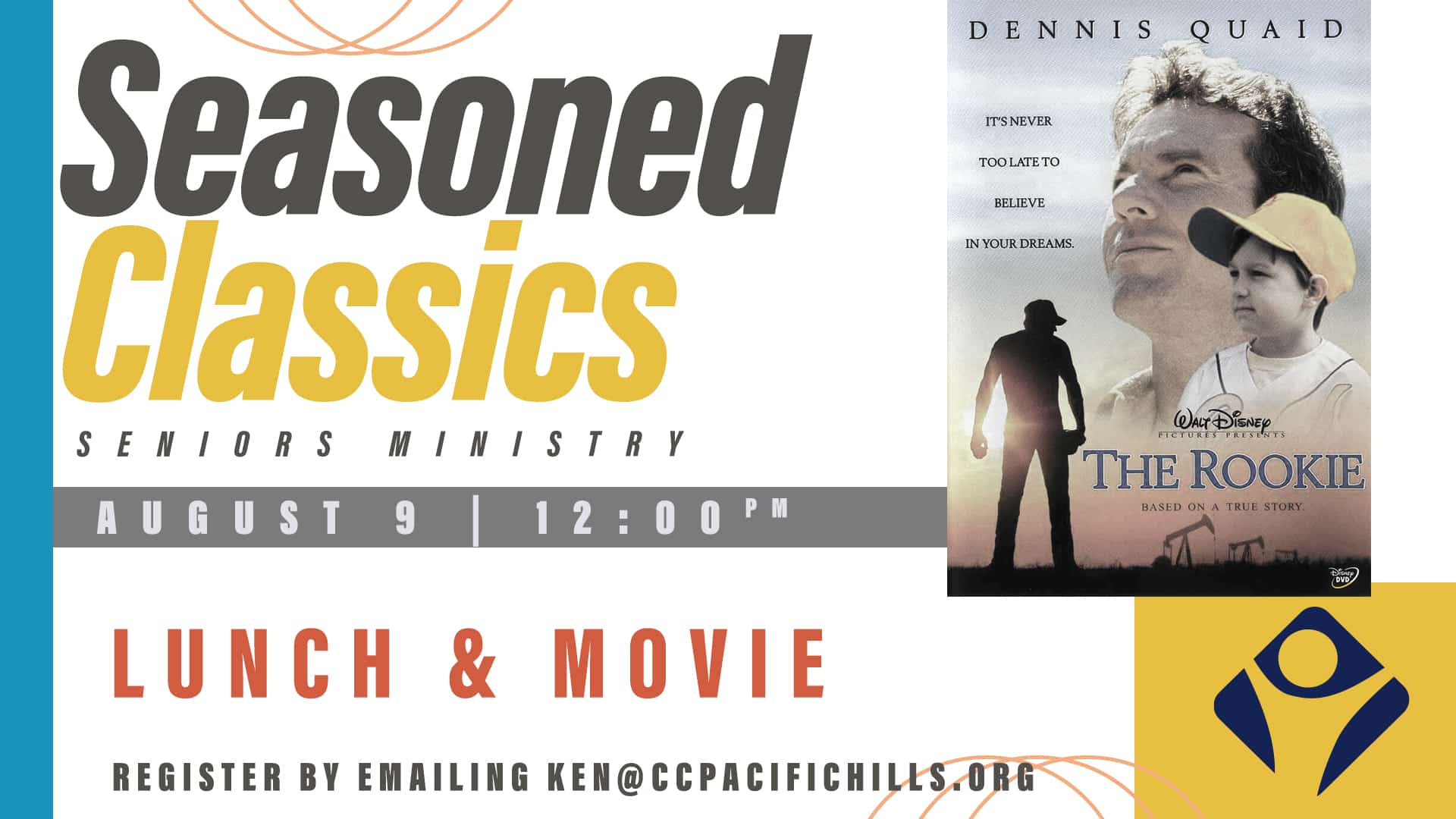 Join us on Saturday, August 9, @ 12:00 PM, for a special Seasoned Classics movie afternoon featuring The Rookie. The movie is about the inspiring true story of high school teacher and coach Jim Morris, whose Major League Baseball dreams come true long after most would have given up. Starring Dennis Quaid, this heartwarming film celebrates perseverance, faith, and second chances.